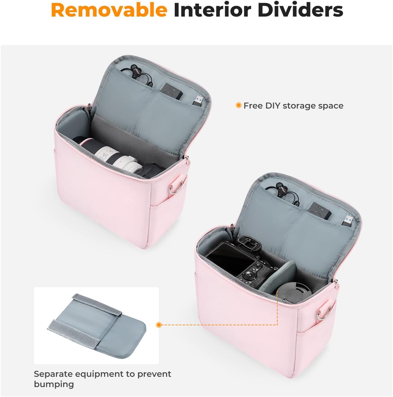 Made from durable materials, this shoulder photography bag offers protection for your gear while also being stylish and cute. The interior features padded dividers to keep your equipment organized and secure. Plus, there are multiple pockets for storing accessories like memory cards, batteries, and lens filters.